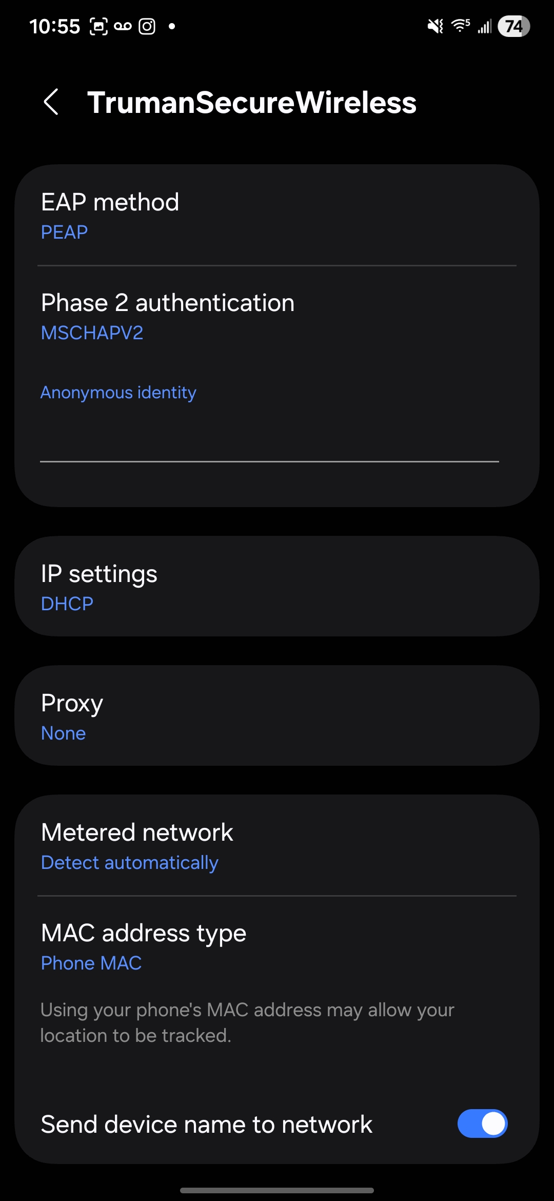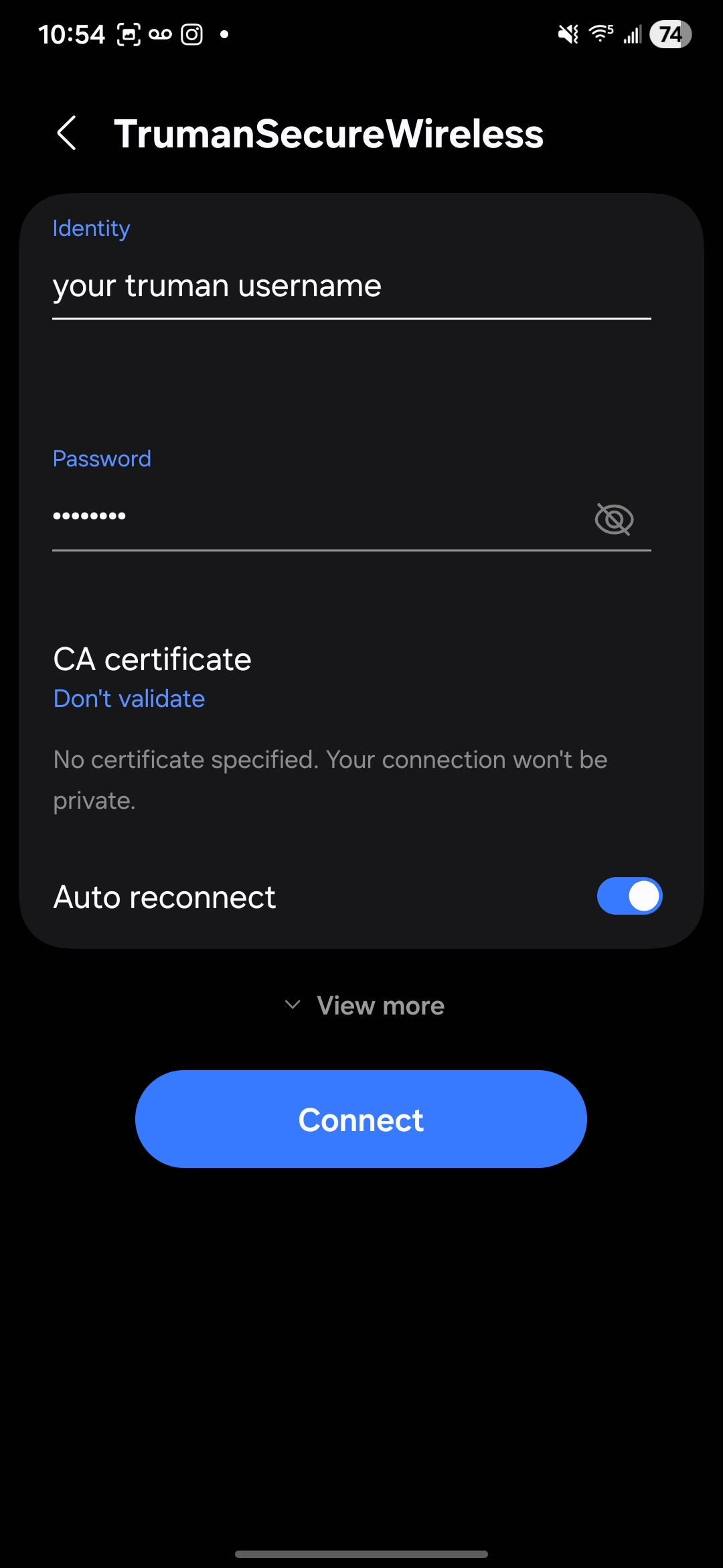 Once done, click “Connect”, and your device will now be connected to the TrumanSecureWireless.